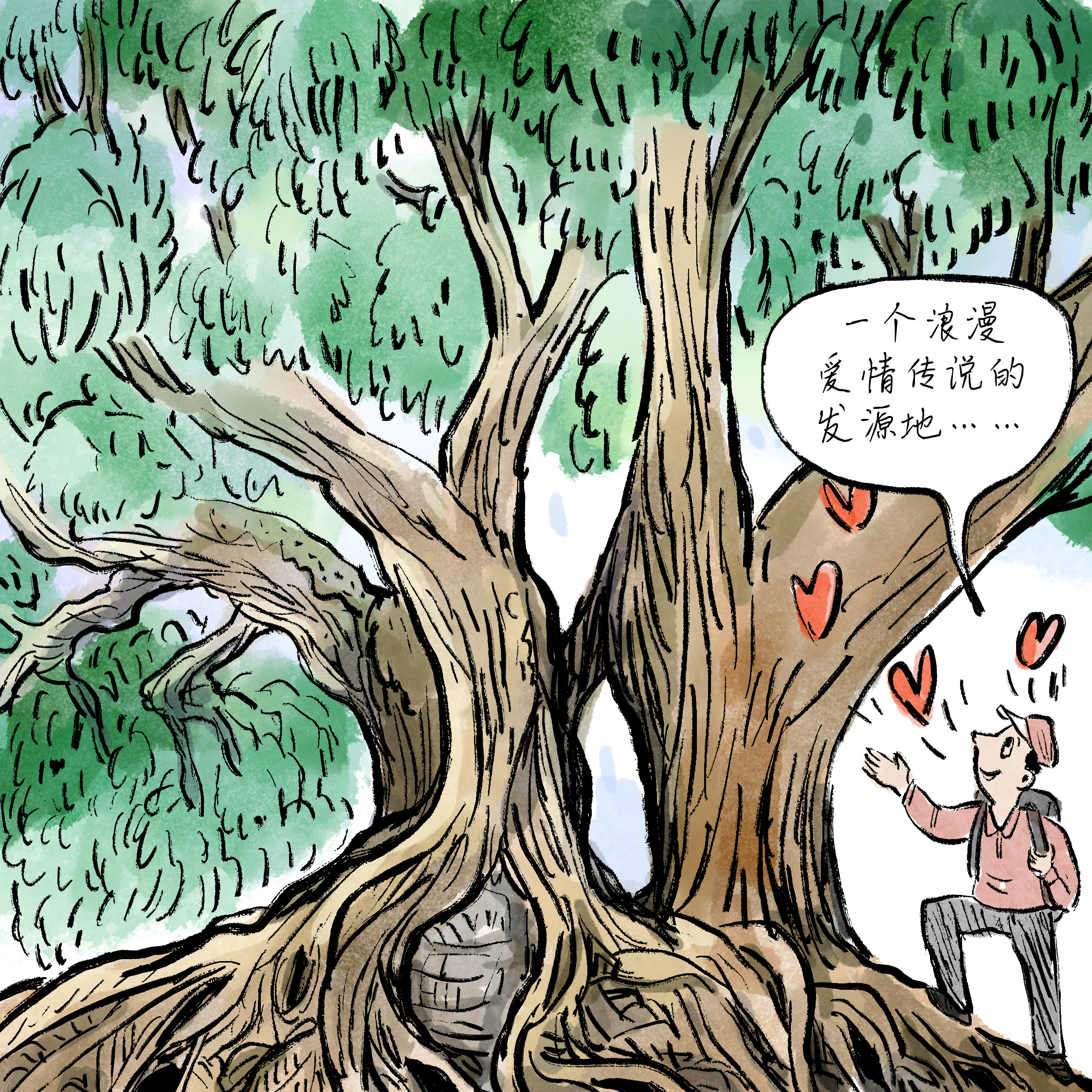 在古街的“千子坟”有一处名为“合欢树”的景点,起始闻其名的本事不明其义,见后才知说念原本是两棵古树长成了一棵树。当地的匹夫合计树亦然通东说念主性的,说它们也多情谊,也因此流传出好多狂妄的爱情故事。