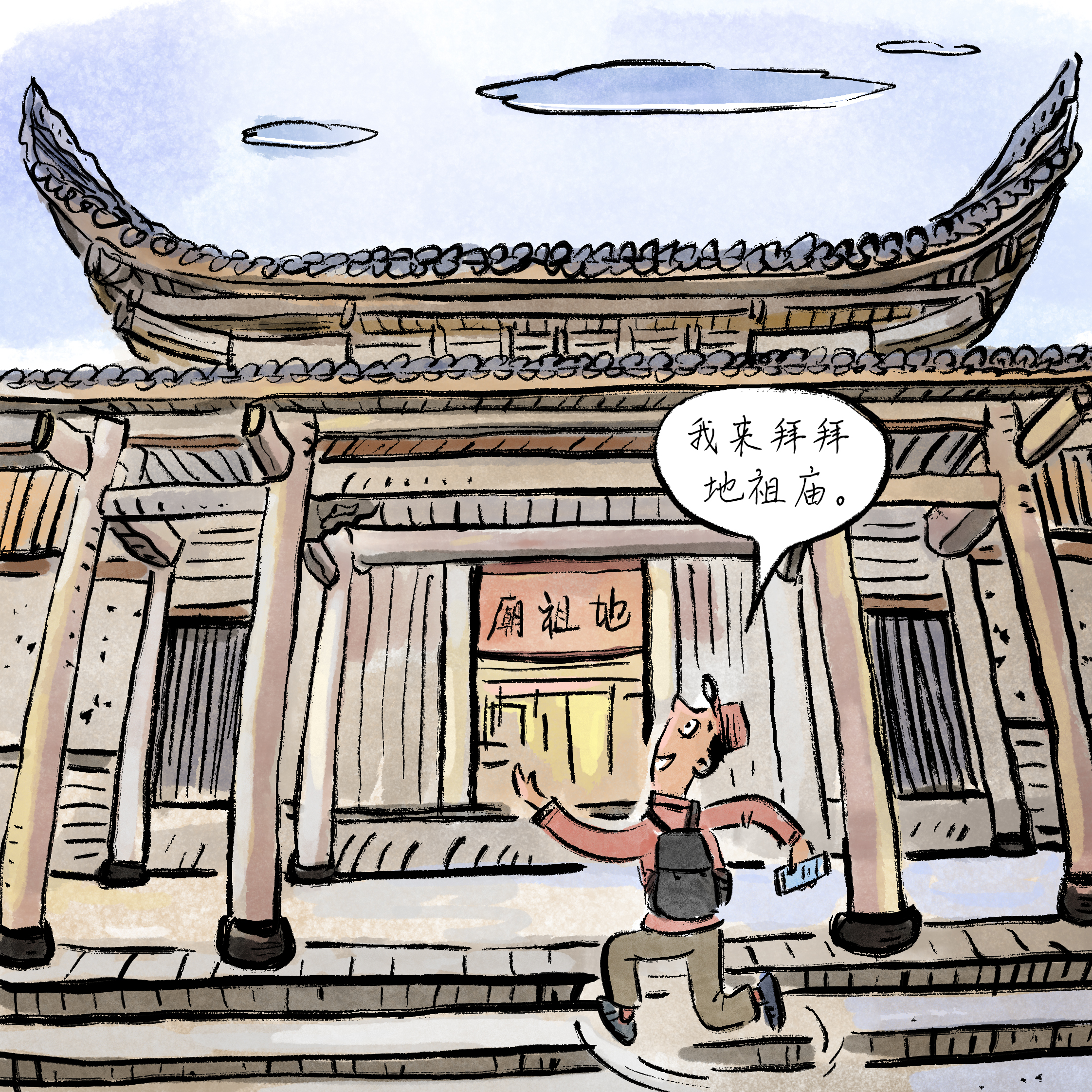 古镇上地祖庙建立外不雅最为根究。临街牌坊歇山式,万年台建在后面,从台下进去就到了院里。直面大殿,有台阶而上,两厢与大殿和牌坊万年台联络的是走马转角楼。从街上能看到牌坊歇山顶飞檐翘角及青瓦间突起的弓形封火墙。正面台基高起,有石阶而上廊内。比拟双方的民房,地祖庙无垠而风格。