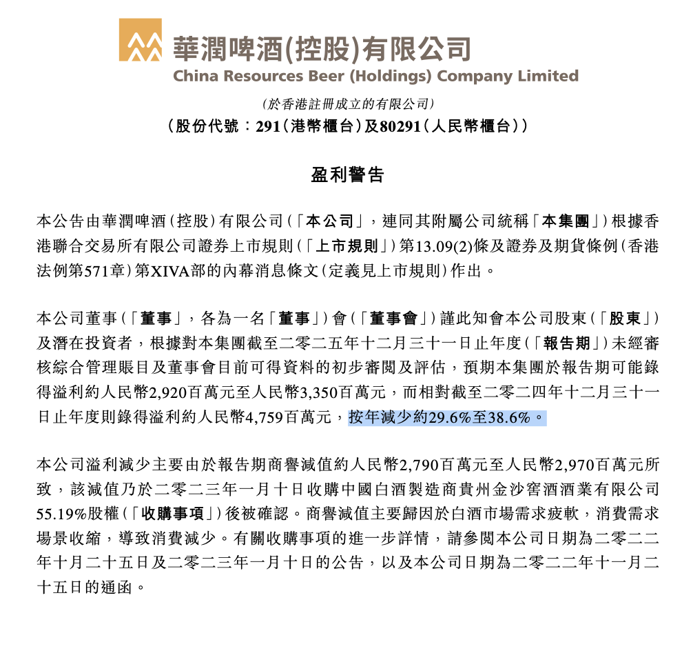 3月10日晚间,华润啤酒一纸盈警公告,激发粗俗温柔。